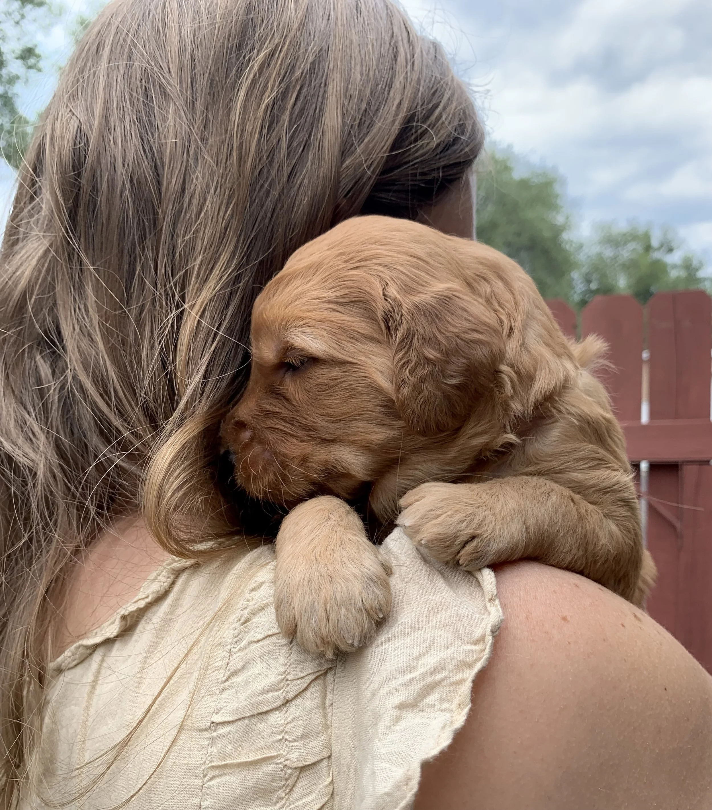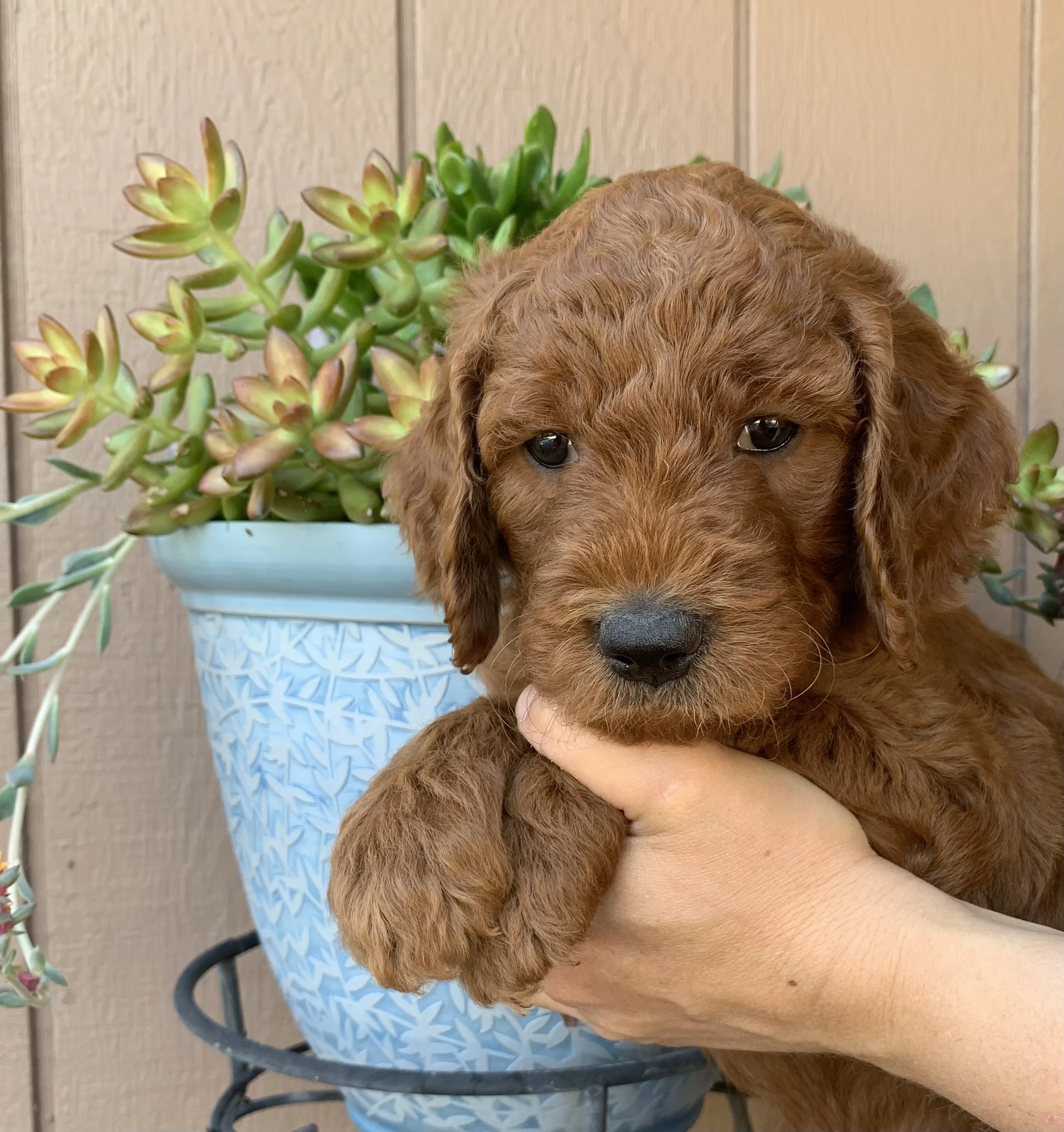 COMING SOON: we will have petite Red Golden Doodle Puppies in mid February 2026.. They should be 20-30 pounds at maturity: the PERFECT size for car rides and activities with the family!