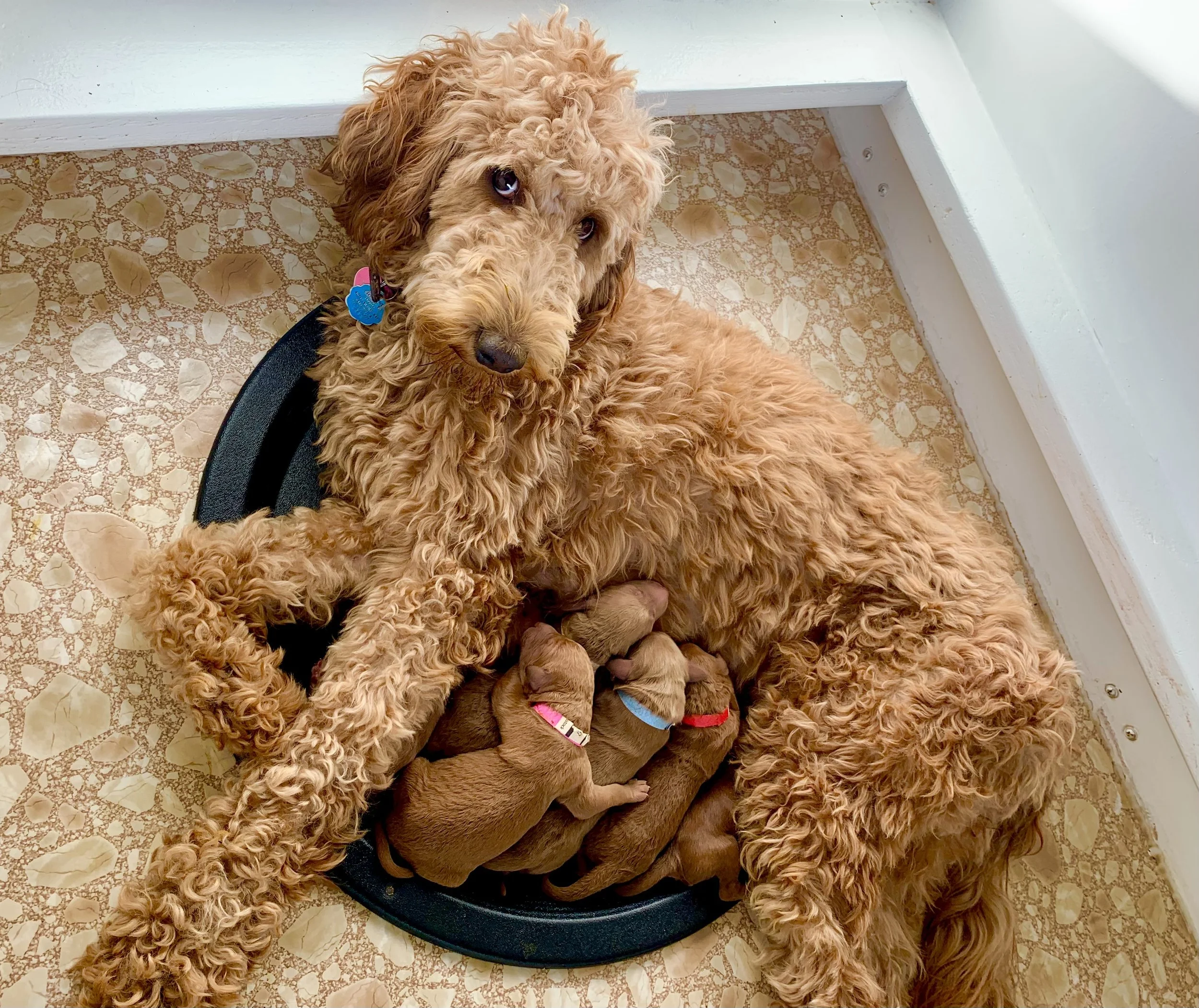 In February we will be having PETITE RED GOLDEN DOODLES from our momma Lyric. They will be available to go home in late April.