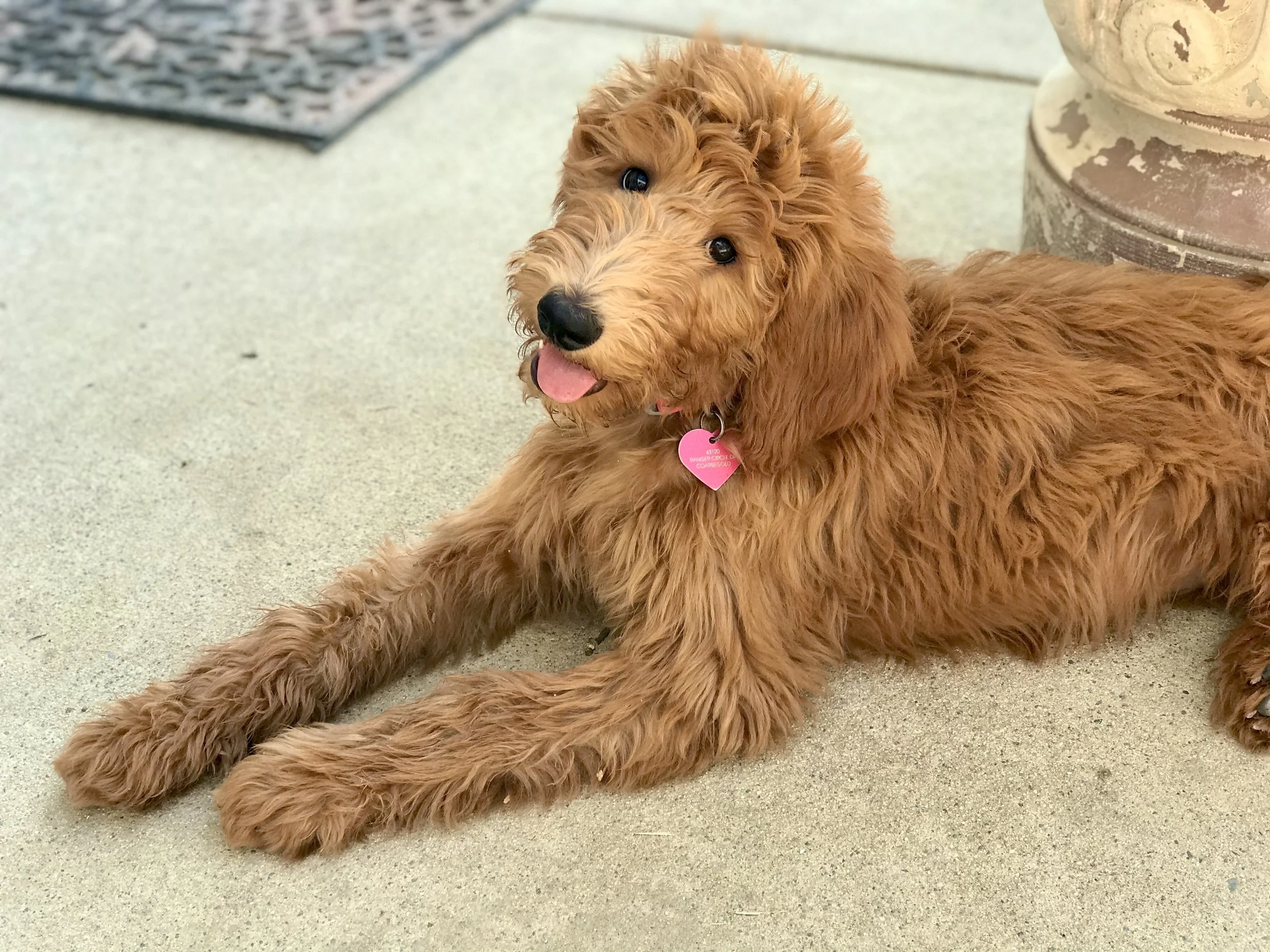 Lyric is our 40 pound delightful, sweet, fun red golden doodle.